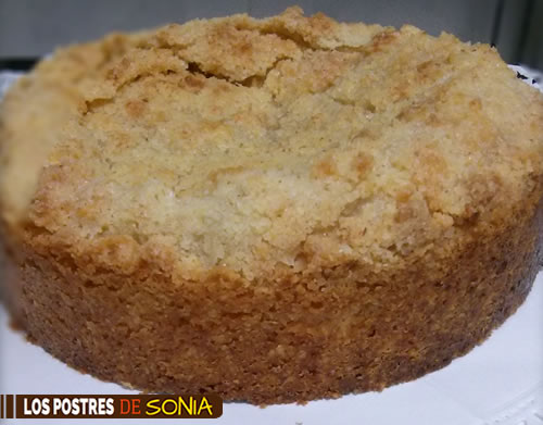 Ahora haremos el crumble, Cortar la mantequilla en cubos y mezclarla con la harina y el azúcar. Formando una especie de arena mojada. Echaremos por encima de la crema (o manzanas ) una vez hayamos echado la crema o la compota sobre la base.