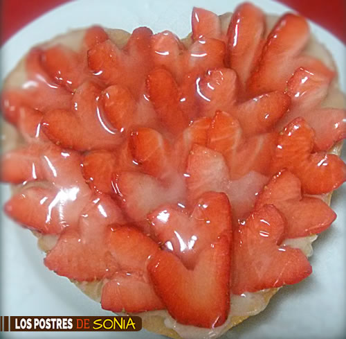 Lavaremos, laminaremos o bien partiremos por la mitad nuestras fresas y colocaremos decorando nuestra superficie.